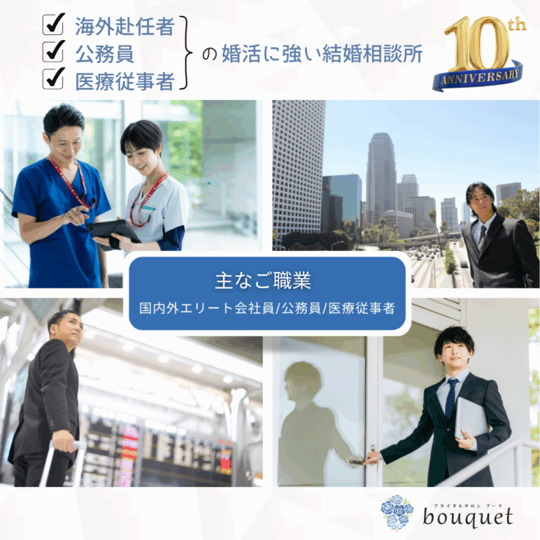 【海外赴任者/公務員/医療従事者の婚活に自信♪】
