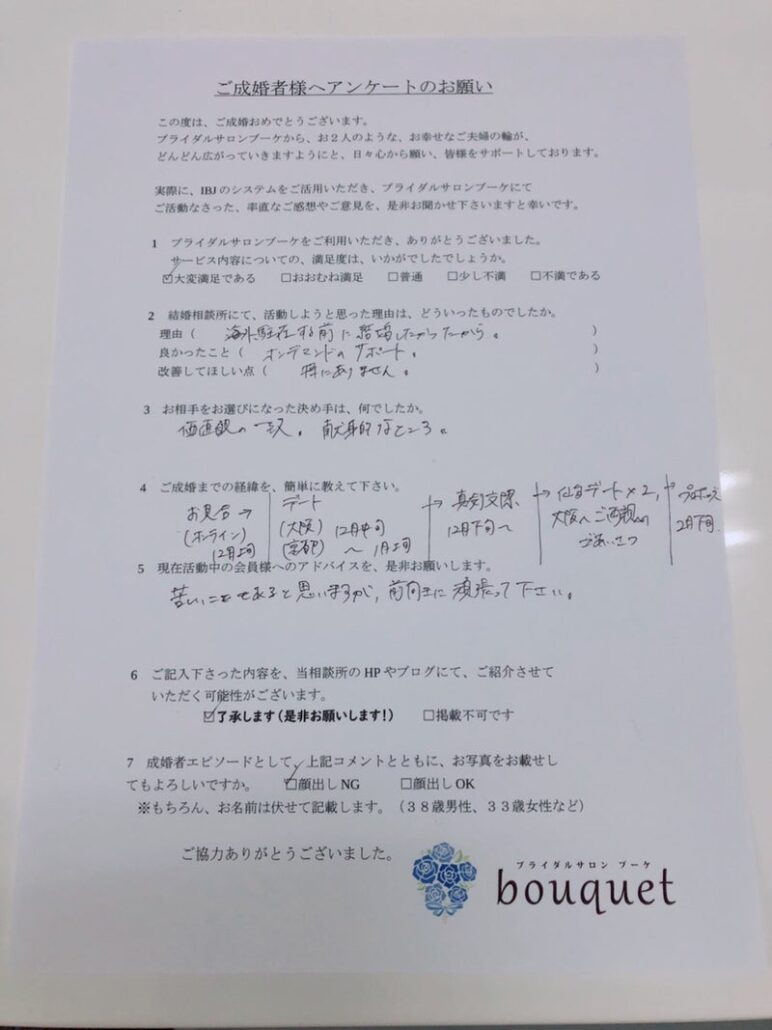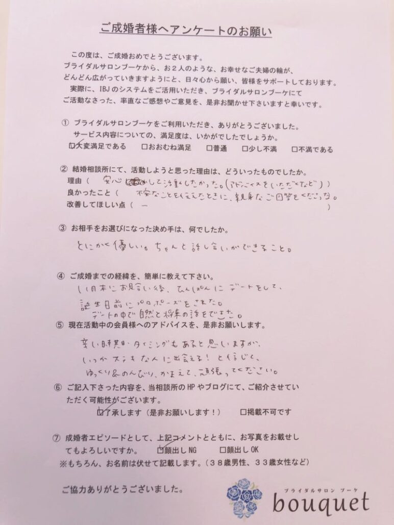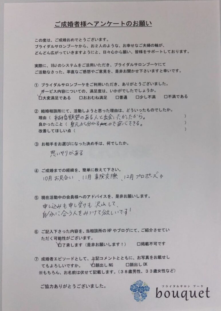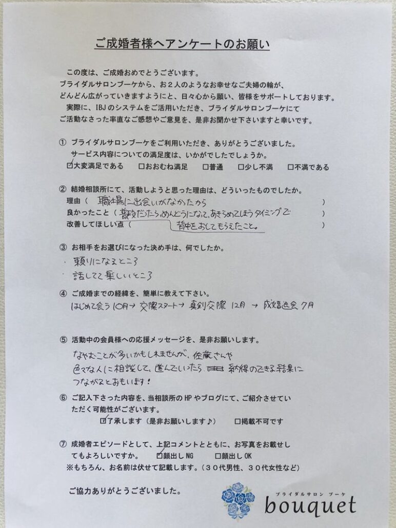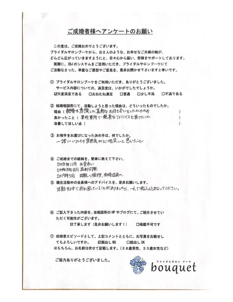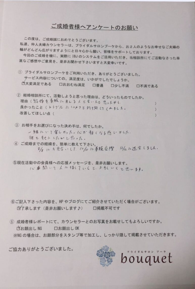 名古屋の結婚相談所ブライダルサロンbouquetでご成婚された会員様の手書きアンケートをご紹介します